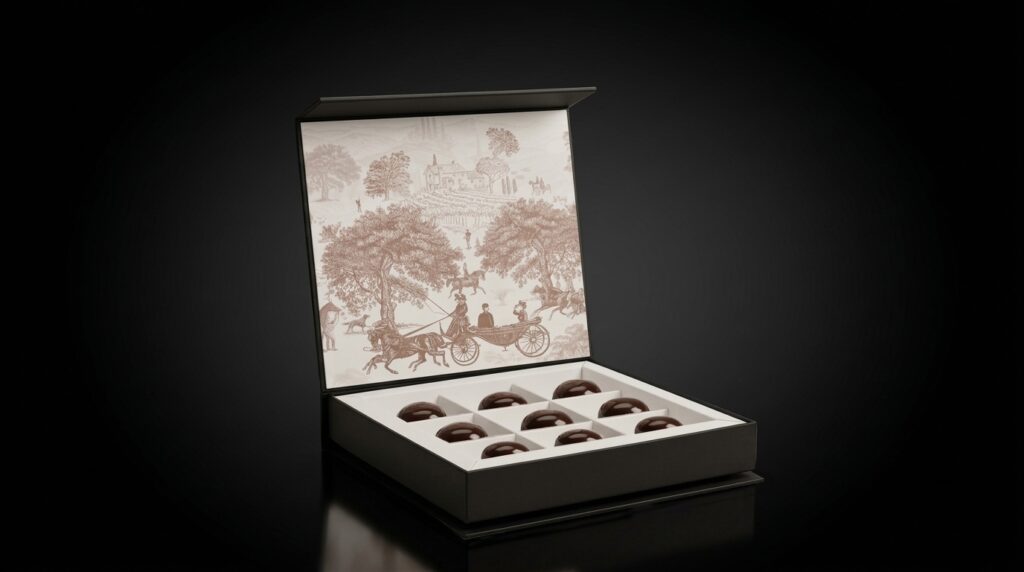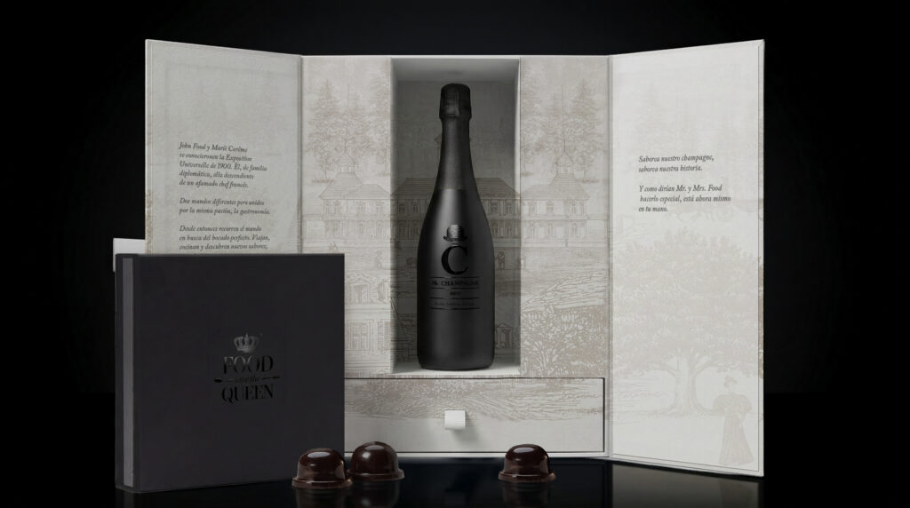 Un champagne seleccionado y una colección de bombones que dialogan con armonía.